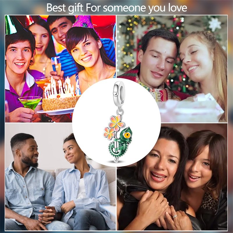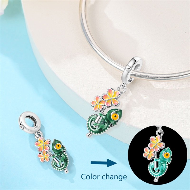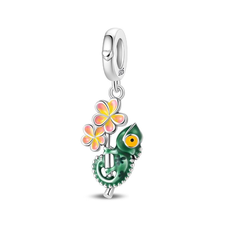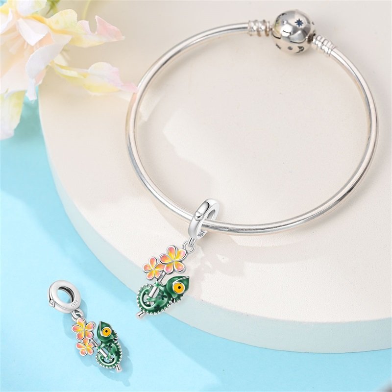 925 Sterling Silver Hanging Chameleon Charms Beaded