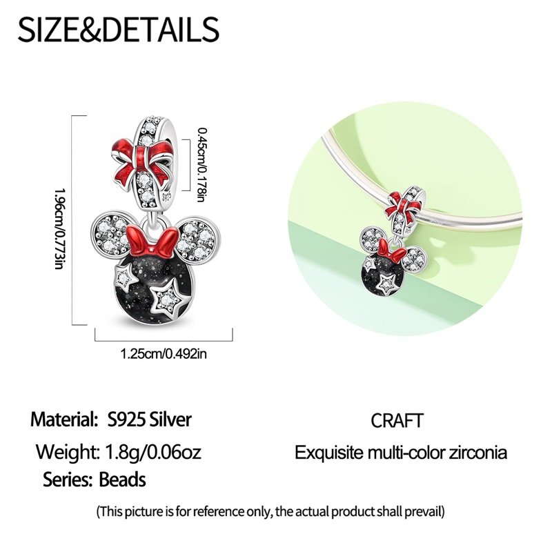 New 925 Sterling Silver Minnie Bow Charms Beads