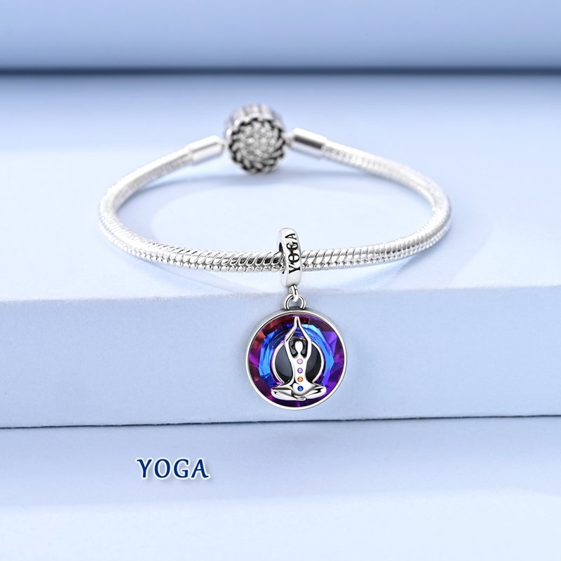 925 Sterling Silver Yoga Halo Charms Beaded